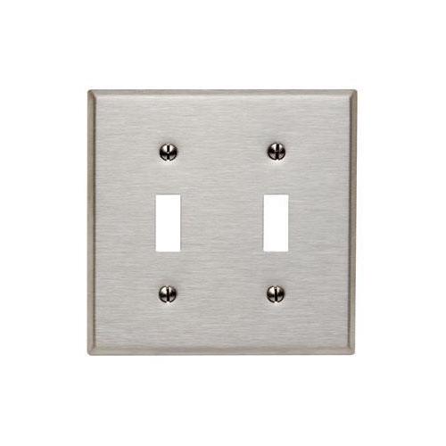Leviton® 84009 Standard Size Wall Plate, 2 Gangs, 4.56 in W x 4.5 in H, 430 Stainless Steel